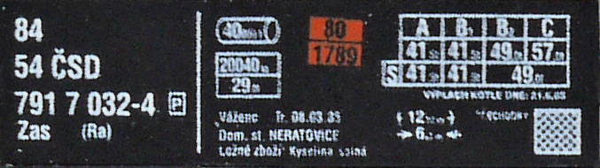 | • 84 54 791 7 032-4 | → | ČSD - Československé státní dráhy |