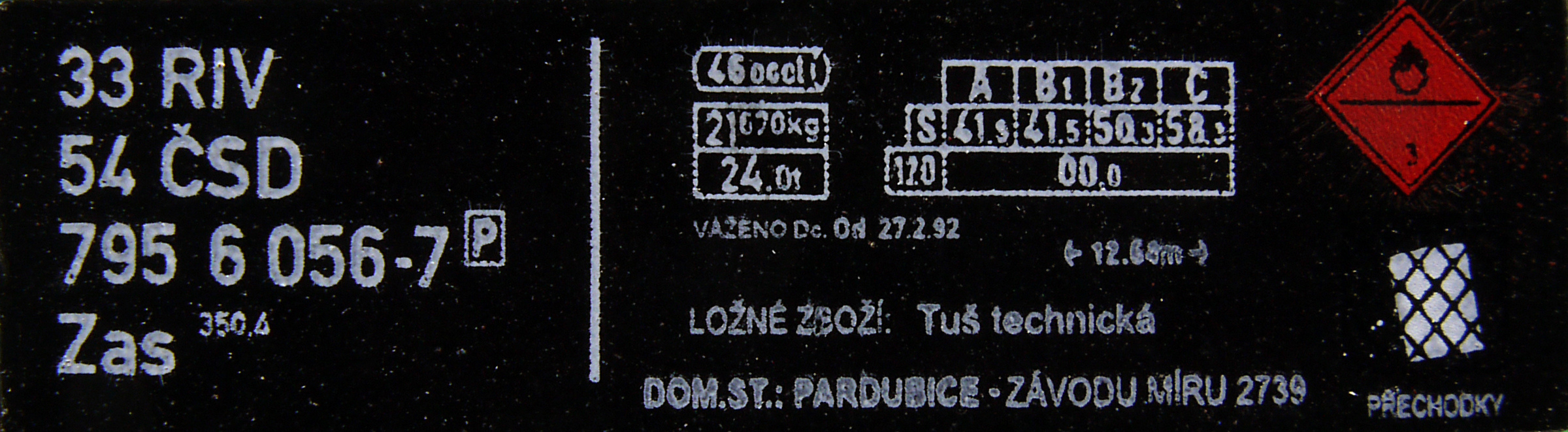 | • 33 54 795 6 056-7 | → | Z - kotlový (cisternový) vůz |