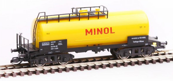 | kotlový vůz žlutý s černým rámem „MINOL“ |