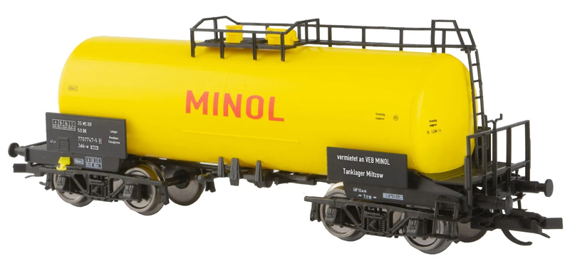 | kotlový vůz žlutý s černým rámem „MINOL“ |