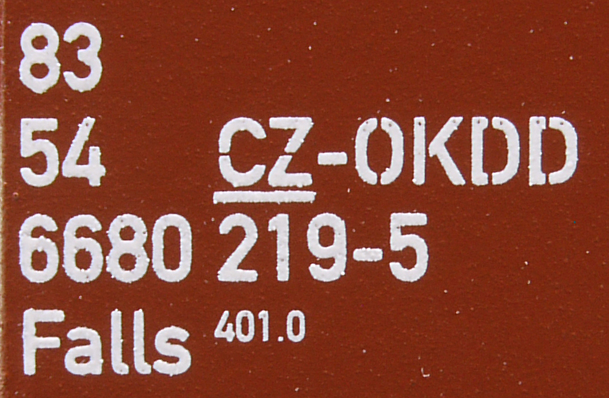 • 83 54 6680 219-5nákladní, s podvozky, soukromý vůz, pro mezinárodní dopravu dle zvláštních úmluv