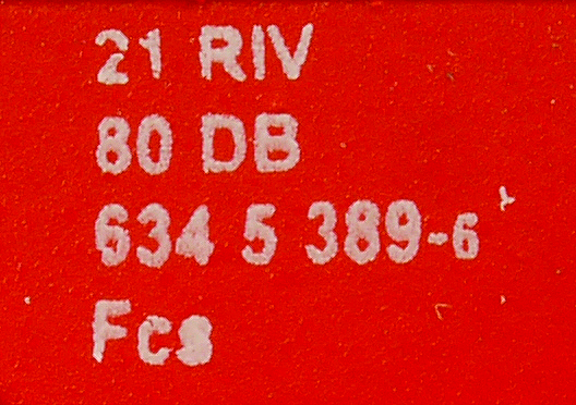 | • 21 80 634 5 389-6 | → | nákladní, nezávislé nápravy, pevný rozchod, ve vlastnictví železniční správy, RIV, PPV |