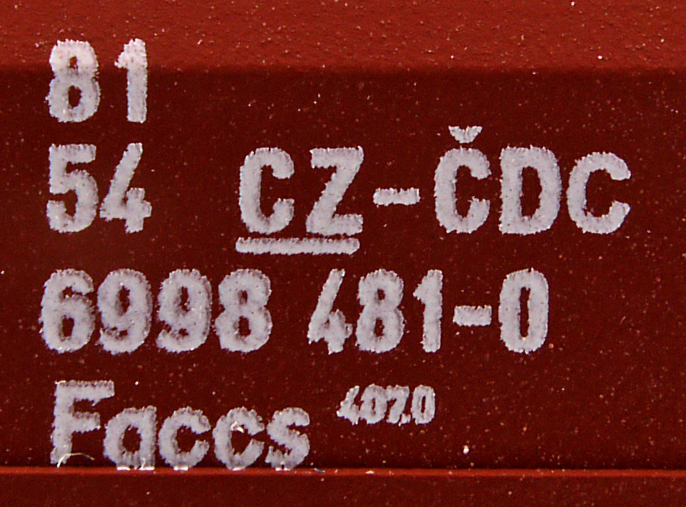 • 81 54 6998 481-0nákladní, s podvozky, ve vlastnictví železniční správy, pro mezinárodní dopravu dle zvláštních umluv