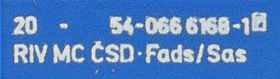 | • 20 54-066 6168-1 | → | ČSD - Československé státní dráhy |