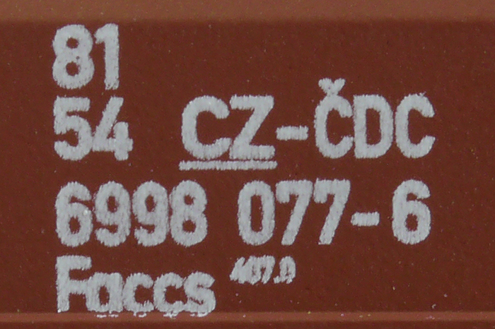 • 81 54 6998 077-6nákladní, s podvozky, ve vlastnictví železniční správy, pro mezinárodní dopravu dle zvláštních umluv