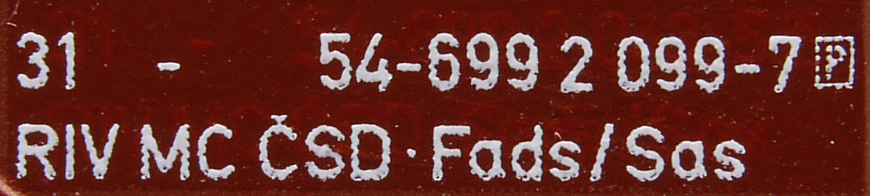 | • 31 - 54-699 2 099-7 | → | ČSD - Československé státní dráhy |