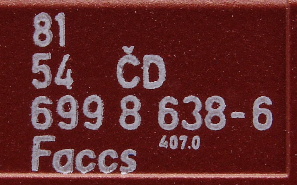 • 81 54 699 8 638-6nákladní, s podvozky, ve vlastnictví železniční správy, pro mezinárodní dopravu dle zvláštních umluv