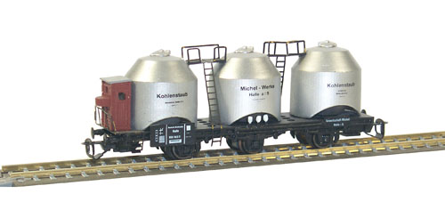 nákladní vůz na uhlený prach stříbrný s černým rámem a brzdařskou budkou