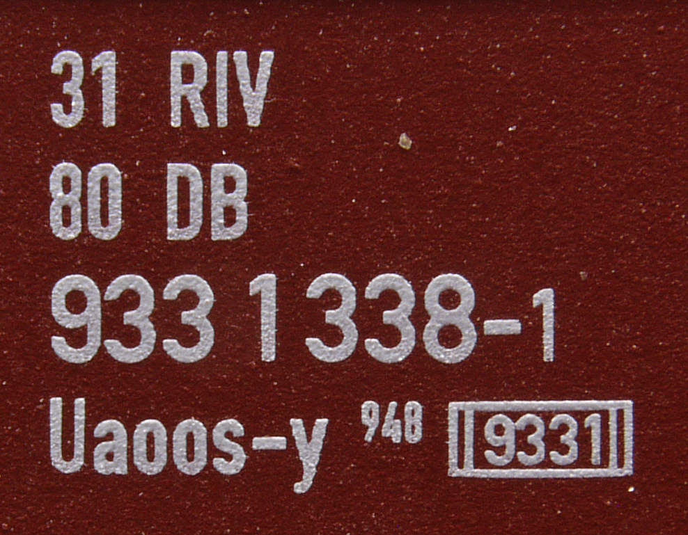 | • 31 80 933 1 338-1 | → | nákladní, s podvozky, pevný rozchod, ve vlastnictví železniční správy, RIV, PPV |