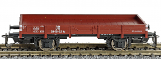 | nízkostěnný nákladní vůz červenohnědý s černým pojezdem |