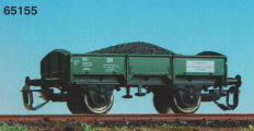 Kód   65157  [Nákladní vozy] → [Nízkostěnné] → [2-osé X] → 65157: nízkostěnný nákladní vůz tmavě zelený s brzdařskou plošinou