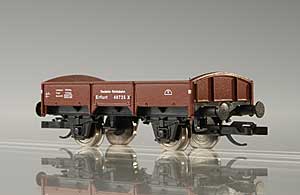 Kód   14927  [Nákladní vozy] → [Nízkostěnné] → [2-osé X] → 14927: nízkostěnný nákladní vůz červenohnědý s nákladem dvou dvojkolí