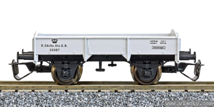 nízkostěnný nákladní vůz šedý s černým pojezdem