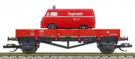 | nízkostěnný nákladní vůz červený ložený dodávkou Matador do požárního vlaku |