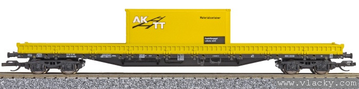 Popis   nízkostěnný nákladní vůz žlutý s nákladem žlutého kontejneru 20' „AKTT“