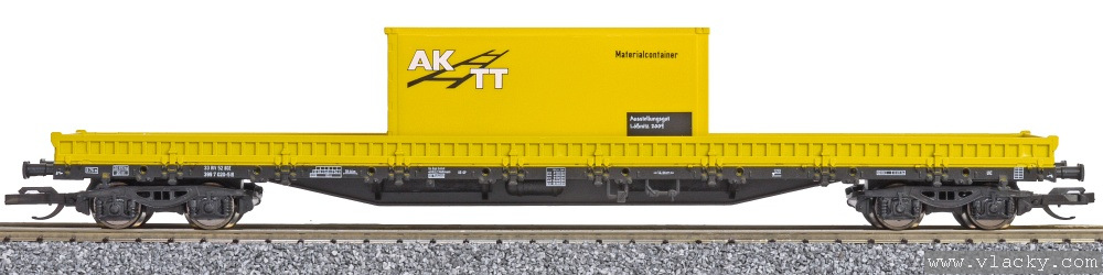 Popis   nízkostěnný nákladní vůz žlutý s nákladem žlutého kontejneru 20' „AKTT“