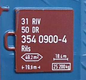 | • 31 50 354 0900-4 | → | nákladní, s podvozky, pevný rozchod, ve vlastnictví železniční správy, RIV, PPV |