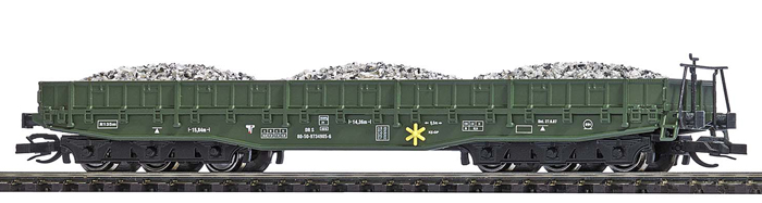 | nízkostěnný vůz do pracovního vlaku s nákladem štěrku |