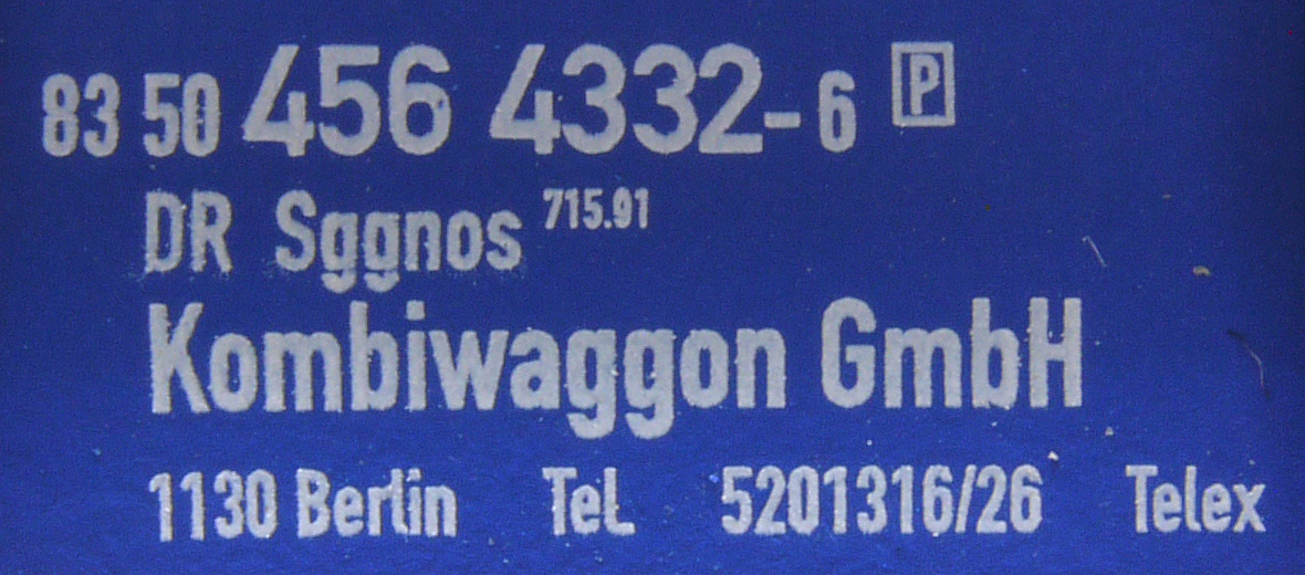 | • 83 50 456 4332-6 | → | DR - Deutsche Reichsbahn |