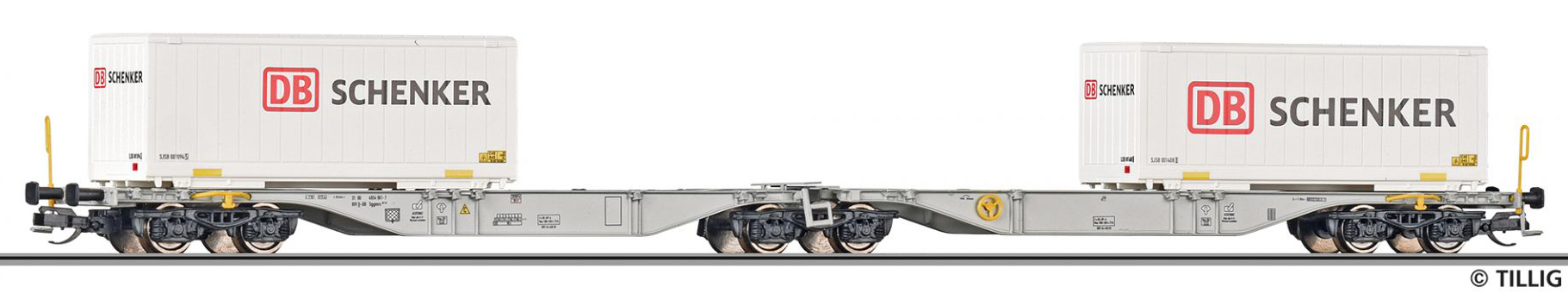 | dvoudílný kontejnerový vůz šedý se dvěma kontejnery 20' „DB Schenker“ |