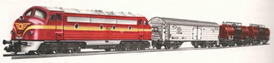 ![[Soupravy] → [S lokomotivou] → 01140: set dieselové lokomotivy a tří rychlíkových vozů „Santa-Fé-Express“ [Soupravy] → [S lokomotivou] → 01140: set dieselové lokomotivy a tří rychlíkových vozů „Santa-Fé-Express“](./foto/04.01.00/00013770_t.jpg) |
