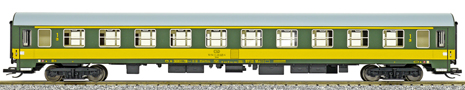 | rychlíkový vůz zelený se žlutým pruhem a šedou střechou 2. tř. |