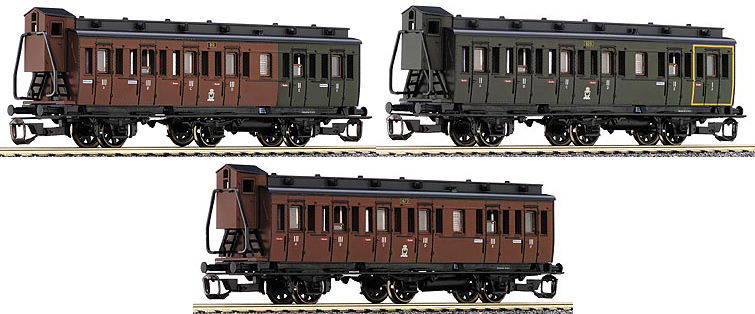 oddílový osobní vůz červenohnědý s černou střechou a brzdařskou budkou 3. tř.