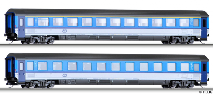 rychlíkový vůz v barevném schematu „Najbrt“ 2. tř.