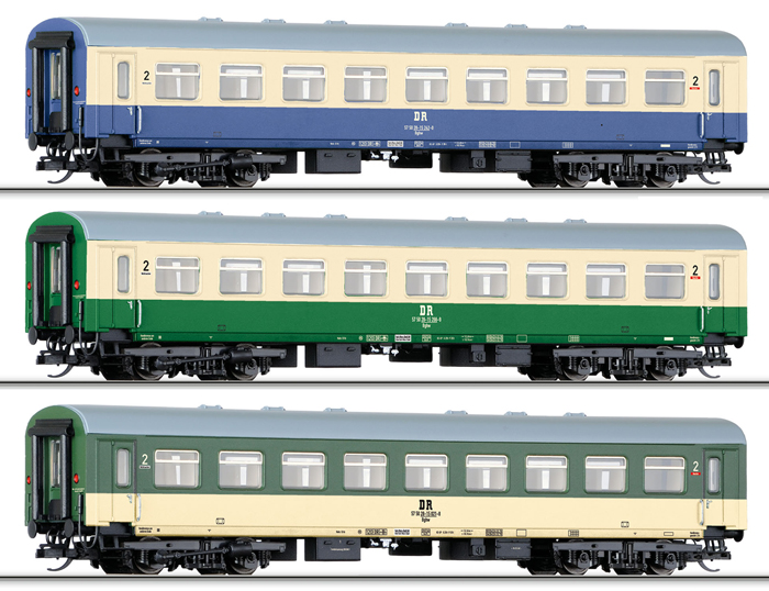 | set tří osobních vozů 2 .tř. v testovacím nátěru |
