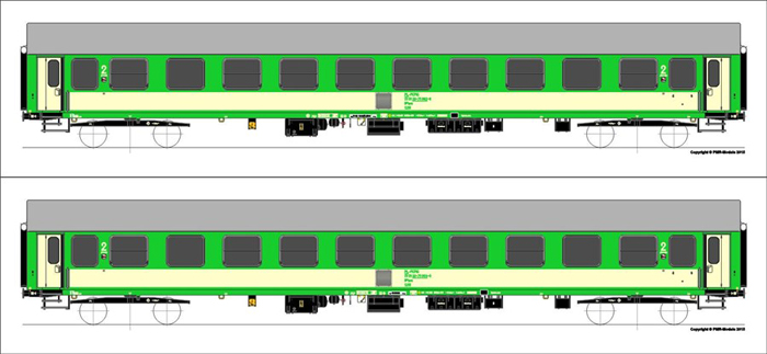 | rychlíkový vůz zelený-slonová kost s šedou střechou 2. tř. |