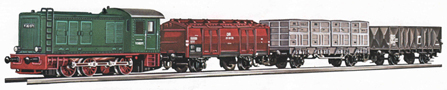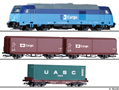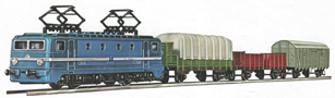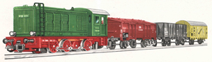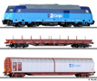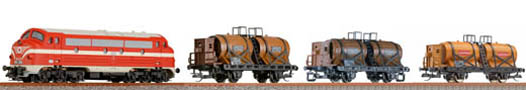 | set dieselové lokomotivy NoHAB (02535) a tří nákladních vozů na přepravu vína (1 |