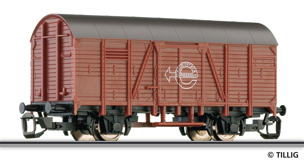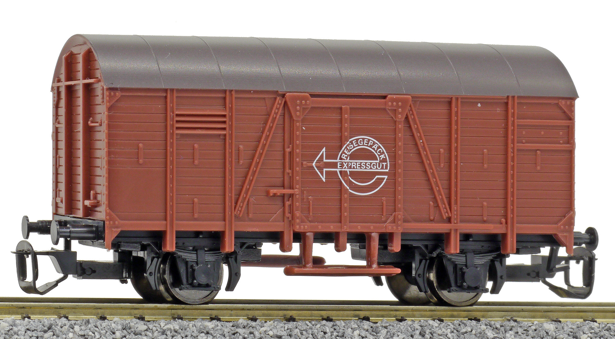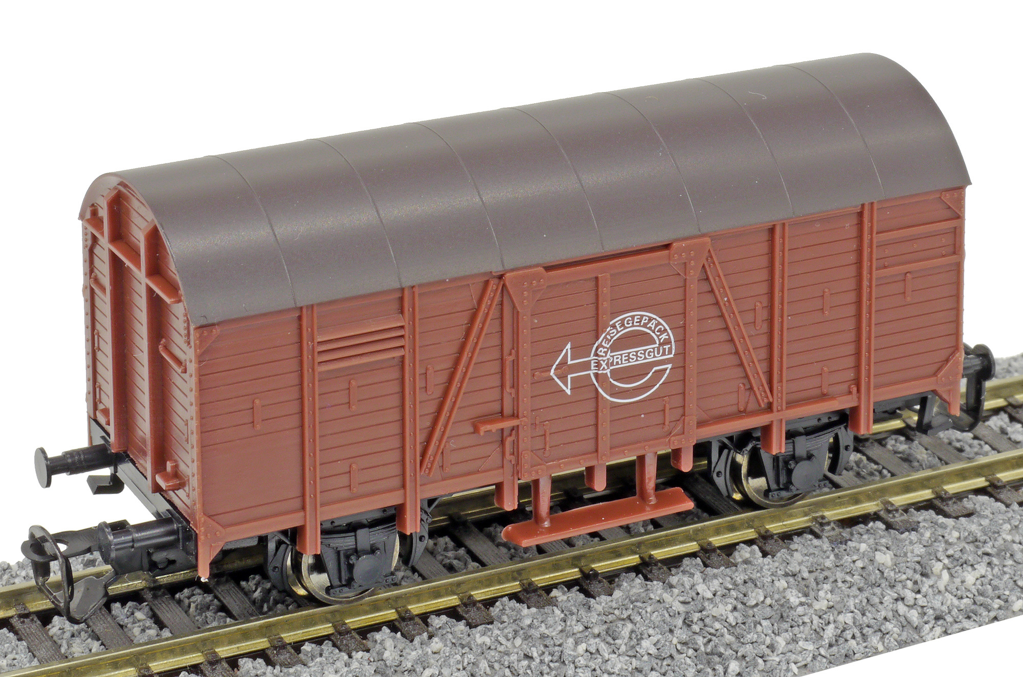 | krytý nákladní vůz červenohnědý s hnědou střechou „Expressgut“ |