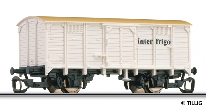 | krytý nákladní vůz bílý s krémovou střechou „Interfrigo“ |