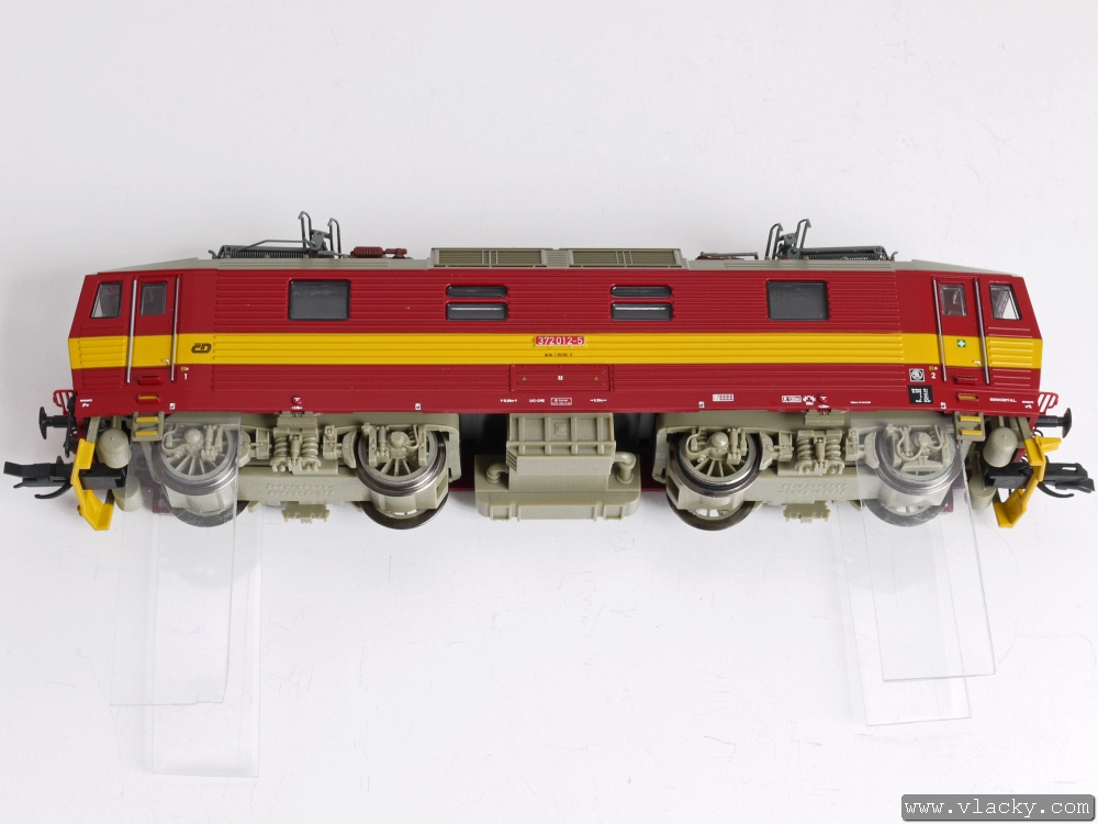 Na skříni lokomotivy z vnitřní strany jsou vedle dveří směrem ke středu plastové výstupky. Zasunutím pásků uvolníme skříň od pojezdu a můžeme ji potom lehce sundat.