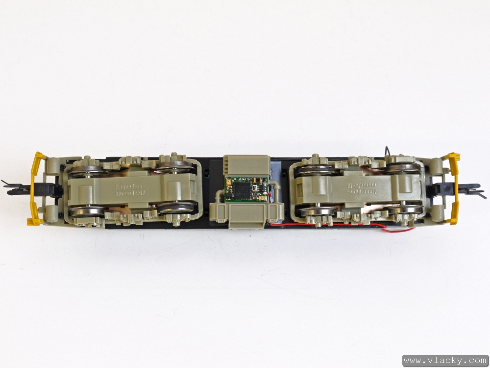 Pro umístění vysílače LISSY je vespod lokomotivy dostatek místa. Vodiče povedeme kolem podvozku a potom dovnitř k plošnému spoji.
