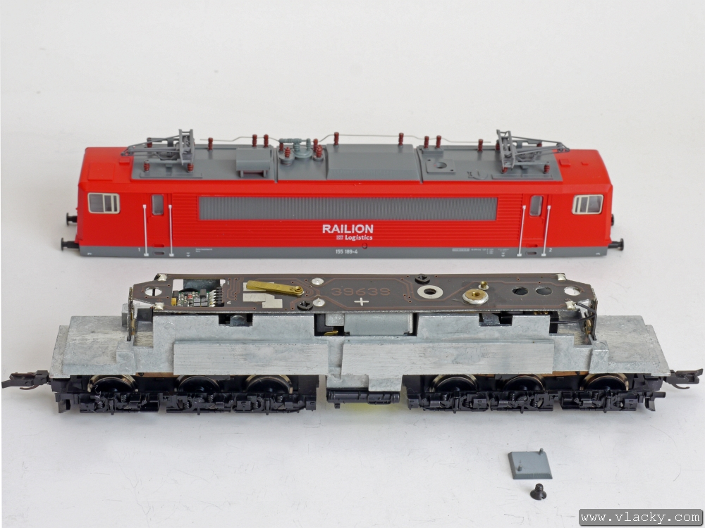 Elektrická lokomotiva Tillig BR155 připravená k osazení LISSY vysílače. Lokomotiva již byla dříve osazena lokomotivním dekodérem.