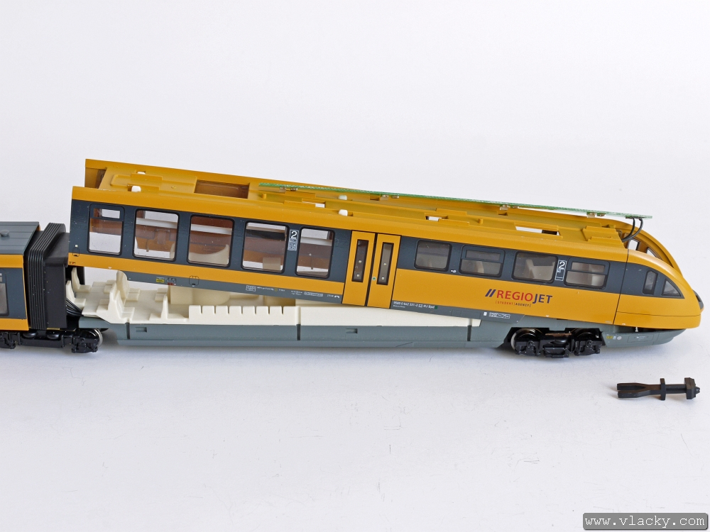 Motorová jednotka BR642 „Desiro” připravená k osazení LISSY vysílače. Pracovat budeme pouze s částí, kde je umístěn motor, což lze poznat zespodu podle podvozku s ozubenými převody a podle skříně, kde je pouze 2. vozová třída.