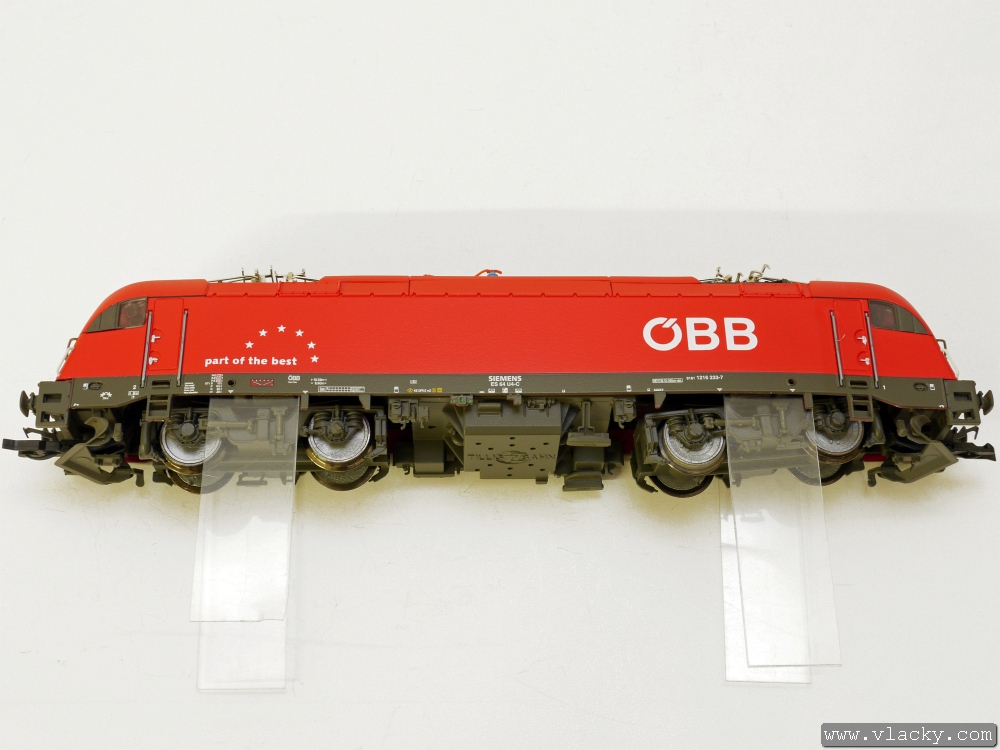 Připravený vysílač LISSY přilepíme kapkou vteřinového lepidla. Použití přiložené oboustranné lepicí pásky není vhodné kvůli její tlouštce. Pod lokomotivou není moc velká výška nad TK (temenem kolejnice).