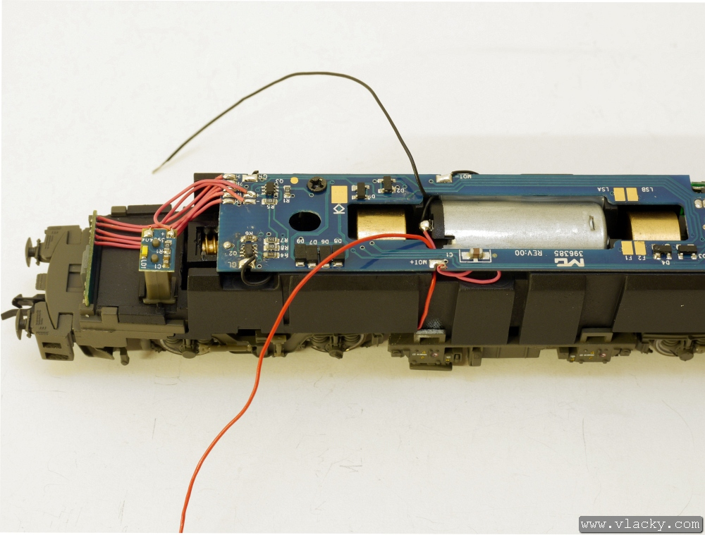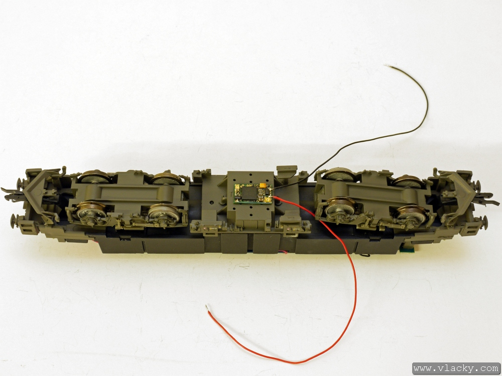 Přívody vysílače LISSY byly připájeny na pájecí plošky GL a GR vedle přívodů od podvozku lokomotivy. V tomto okamžiku je lokomotiva připravena k provozu.