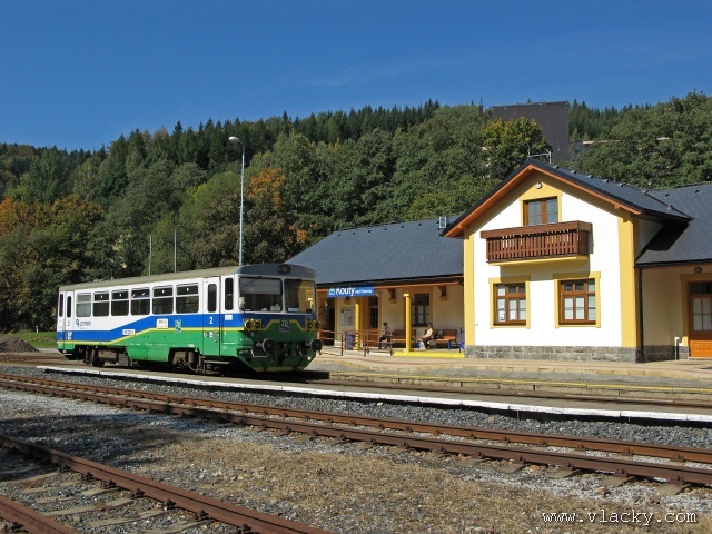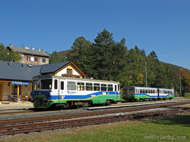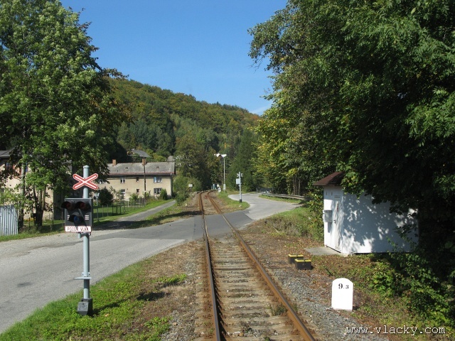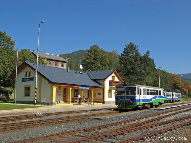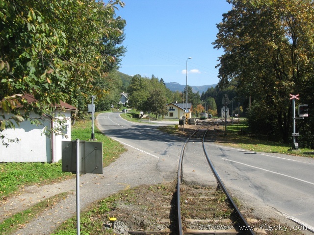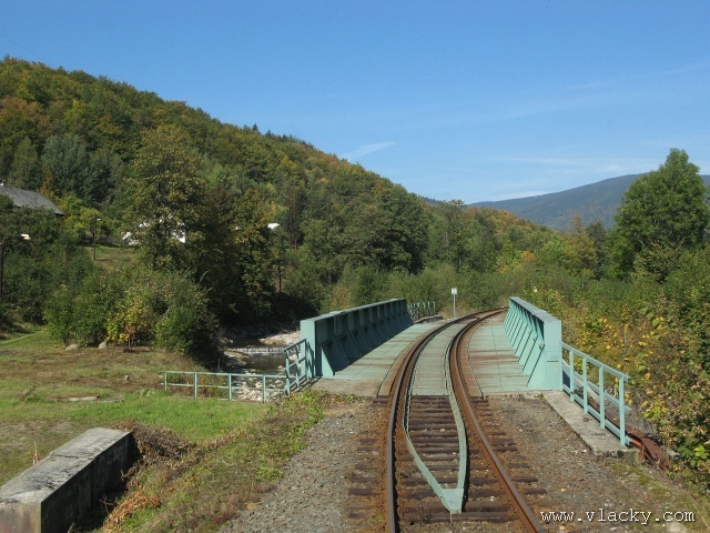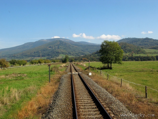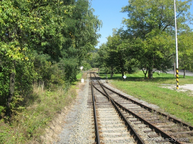 Železnice Desná - cesta vlakem do hor 23.9.2007V neděli 23.9.2007 definitivně skončilo astronomické léto a v 11:51 se ujal vlády podzim. Již delší dobu jsem plánoval uskutečnění projížďky po Železnici Desná a pořízení záznamu z jízdy po trati ze stanoviště strojvedoucího. Inspiraci jsem našel na internetovém TV kanálu od sousedů Bahn TV Online. Počasí ten víkend bylo mimořádně dobré, obloha čistě modrá, poslední záchvěvy léta. Povolení od vedoucího železničního provozu Železnice Desná pro vstup na stanoviště strojvedoucího jsem měl v ruce, takže jedeme. Cestu jsem začal v Petrově nad Desnou. Po nezbytné domluvě jsem nastoupil do vlaku 13765, který byl teprve na cestě do Šumperka a který ze Šumperka pojede zpátky směrem do Koutů nad Desnou. Veškerou potřebnou techniku jsem si rozložil na zadním stanovišti a připravil se na akci. Po příjezdu vlaku do Šumperka zbývá ještě 9 minut, které jsem využil na přeleštění okna a otestování kamery. Je 11:38, kamera běží a vlak 13764 sestavený ze dvou motorových vozů 810 odjíždí ze Šumperka. Odjíždíme přes severní zhlaví, kde ze stanice vedou dvě trati, naše do Koutů nad Desnou a sousední do Olomouce přes Uničov a Šternberk. Přejíždíme dva mosty, naše trať zatáčí více doleva směrem do Vikýřovic, druhá trať se stáčí doprava a přechází ve stoupání směrem do Nového Malína. Přijíždíme na první zastávku Vikýřovice u penzionu. Trať dále pokračuje podél zahrad nenáročným stoupáním do zastávky Vikýřovice. Za ní se trať opět napřimuje až k Petrovu nad Desnou. My však ještě zastavujeme na jedné z nejmladších zastávek, Vikýřovice-Lesní. Za touto zastávkou vyjíždíme do rovinatých polí a luk, kde je v dálce vidět stanice Petrov nad Desnou. Vjíždíme na hlavní kolej a po zastavení vlaku se oba motorové vozy rozpojí. Náš bude pokračovat dále do Koutů nad Desnou, zadní motorový vůz následně odjede do Sobotína jako vlak 23858. Protože původní trať vedla ze Šumperka do Sobotína, pokračuje hlavní staniční kolej tímto směrem. Ze stanoviště vidíme před sebou přejezd se silnicí č. 11 směrem na Ostravu, který je zrovna modernizován a budou na něm automatické závory. Momentálně je však mimo provoz a musíme podle návěsti snížit rychlost a dávat zvuková znamení. Dostáváme Všeobecný rozkaz "V" a odjíždíme ze stanice. Trať se stáčí více vlevo do údolí říčky Desné. Přejíždíme přejezd s místní silnicí spojující Petrov nad Desnou s Rapotínem, přejíždíme ocelový most, který byl kompletně obnoven po povodni 1997, a je tu Rapotín zastávka. Tady musíme podle Všeobecného rozkazu "V" zastavit, protože s modernizací předchozího přejezdu jsou spojena provozní omezení. Před sebou vidíme, že závory teprve teď začínají uzavírat přejezd se silnicí č. 44. Teprve potom můžeme pokračovat do nedaleké zastávky Rapotín. Ještě nedávno byla tato zastávka nákladištěm a vedle bývalé staniční budovy stálo skladiště. Při odjezdu ze zastávky jsou ještě patrné stopy po úpravách kolejového svršku. Do místních skláren vedla vlečková kolej, která byla teprve nedávno zrušena a při modernizaci přejezdu tak mohly být závory posunuty blíže. Jedeme směrem k Velkým Losinám. Úplně vlevo nám stromy zakrývají pohled k zámku Velké Losiny. Několika oblouky se vyhýbáme zahradám a vjíždíme do výpravny Velké Losiny. Návěstidlo u samovratného přestavníku první výhybky bliká bílým světlem, vše je v pořádku. V této výpravně se křižují některé protijedoucí vlaky. Bezobslužnost výpravny je zajištěna použitém samovratných přestavníků. Vlak jedoucí od Šumperka nebo Koutů nad Desnou vjíždí na svoji kolej a při odjezdu si sám přehodí výhybku se samovratným přestavníkem na odjezdovém zhlaví. Po telefonickém ohlášení jedeme dále. Při odjezdu z výpravny si přehazujeme zmiňovaný samovratný přestavník a jsme na širé trati, která přechází do prudšího stoupání. Velké Losiny zastávka je u místní silnice mezi Velkými Losinami a Maršíkovem. Údolí se začíná pomalu zužovat a vlevo se k trati přimyká silnice č. 44 směřující do Jeseníku. Nikdo z cestujících nechce vystupovat a proto zastávku Loučná nad Desnou - Filipová projíždíme. Vpravo mezi porostem se občas objeví zbytky z kdysi velkého nákladového nádraží, které bylo používáno při stavbě přečerpávací elektrárny Dlouhé Stráně. Objevují se první stavení Loučné nad Desnou. Přejíždíme opět říčku Desnou a trať se vine blíže k nástupišti zastávky Loučná nad Desnou. Při povodni 1997 bylo kolejiště výpravny značně poškozeno a druhá kolej tak nebyla obnovována. O původním stavu výpravny dnes vypovídá ještě stojící budova skladiště a v pozadí zbytky rampy. Pokračujeme dále, trať stále stoupá, oblouky jsou ostřejší a traťová rychlost je 40 km/h. Trať přechází ne levou stranu údolí a začíná se skrývat v bujné vegetaci. Zastávka Loučná nad Desnou - Rejhotice vypadá na první pohled nedokončená. Bylo vybudováno vyvýšené nástupiště, ovšem nepotřebná manipulační kolej nemohla být snesena. Ústí do ní sice nepoužívaná vlečková kolej z firmy STRONG WOOD, s.r.o., která však nebyla oficiálně zrušena. Poslední úsek trati nám nenaskýtá příliš rozhledu po údolí, které je zde dosti úzké a trať vede spíše ve svahu a v zářezu. Teprve před příjezdem do stanice Kouty nad Desnou se nám naskytne trochu větší rozhled. Na vjezdu do stanice je opět výhybka se samovratným přestavníkem. Staniční budova bylo v roce 2006 kompletně zrekonstruována za finanční podpory Evropské Unie a státního rozpočtu ČR. Tady naše cesta kon