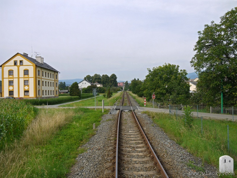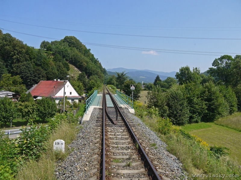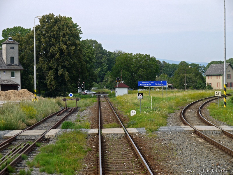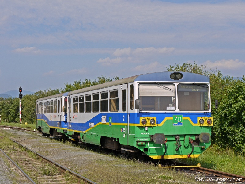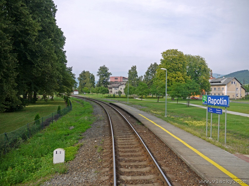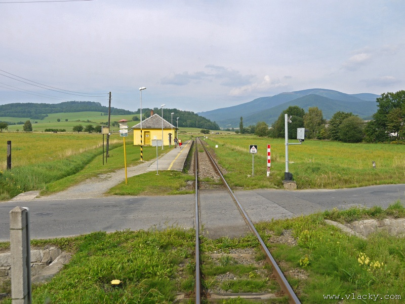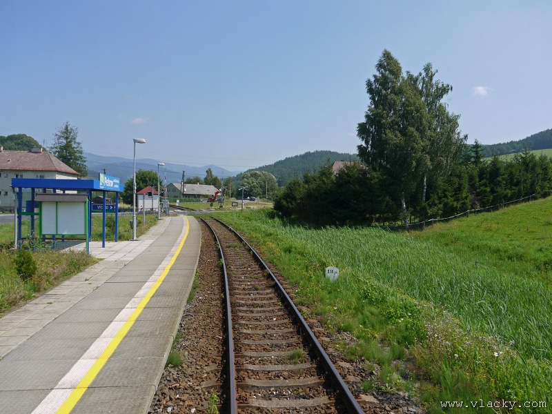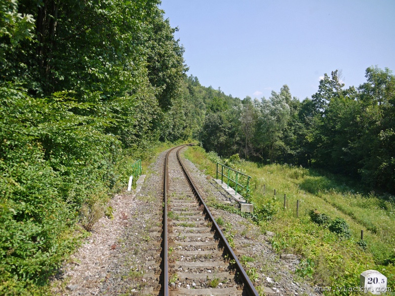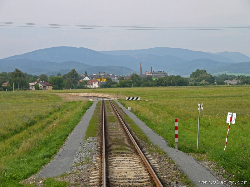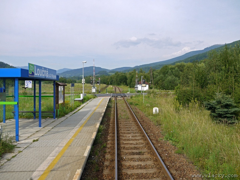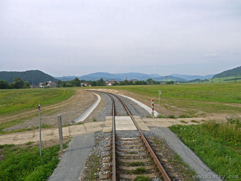 Motorový vůz 810 141-2 "Ježek" před polednem stál ve stanici Velké Losiny, kam přijel jako Os13762. Před polednem se jako Os13765 vrátil v 11.48 do stanice Petrov nad Desnou, aby hned točil na další výkon jako Os23858 do Sobotína s odjezdem v 11.53. Než jsem odjeli ze stanice, po naší levici nás předjela jednotka "Desná" jako Os13764 jedoucí do cílové stanice Kouty nad Desnou. Po výjezdu z Petrova nad Desnou se trať okamžitě stáčí pravým obloukem k hlavní silnici č. 11 na Ostravu. Jízda nebude nijak dlouhá, protože trať do Sobotína měří nějaké 3km a to je před námi ještě Petrov nad Desnou zastávka. Blížíme se k přejezdu se silnicí č. 11, kde je zároveň zmíněná zastávka. Teď v poledne je vytíženost spoje minimální, nikdo nevystupuje, nemáme zpoždění a nezastavujeme. Přejíždíme po ocelovém mostě, kde pod námi je místní komunikace spojující Rapotín s Petrovem nad Desnou a říčka Merta. Trať více stoupá a klikatí se mezi stromy na úpatí svahu. Netrvá dlouho a přijíždíme do stanice Sobotín. Po naší pravici je viditelná zástavba kolem silnice č. 11, ale jedná se o obec Petrov nad Desnou. Obec Sobotín začíná až za stanicí. Zastavujeme před staniční budovou, ale koleje pokračují ještě dále dozadu k rampě. Zde je manipulační sklad firmy Desná a.s., která se v tomto areálu zabývá zpracováním a prodejem surového dřeva, řeziva a paliva. V týdnu je zde často nakládáno i více vozů dřevem a celkem pravidelně je možné vidět nákladní manipulační vlak Mn83454, který v 7.35 naváží prázdné vozy do Sobotína, a jako Mn83455 je v 8.30 vozí zpět. Časy odjezdu jsou podle grafikonu, ale jsou orientační a vlak jede jen v případě potřeby. Po několikaminutovém pobytu ve stanici Sobotín odjíždíme v 12.03 jako přímý Os23859 do stanice Šumperk. V odpoledních hodinách se pravidelným spojem Os23865 dopravuji v 15.31 do Šumperka. Motorový vůz 810 141-2 "Ježek" pojede jako Os23866/Os13772 do Koutů nad Desnou. Do odjezdu v 15.39 zbývá pár minut na přípravu a nějaké to dokumentační foto u nástupiště. Přiblížil se čas pravidelného odjezdu a výpravčí nám dává návěst rozkaz k odjezdu. Opouštíme elektrifikovanou stanici Šumperk a podle jízdního řádu zdoláváme první kilometry trati. Nebudu zde popisovat trať do Koutů nad Desnou. Průběh jízdy jsem okomentoval v minulých letech. Poukázal bych na nejviditelnější úpravy trati v úseku Petrov nad Desnou - Rapotín zastávka. Zde v levém oblouku byly zde provedeny větší zemní úpravy zářezu s novým odvodněním. Zářez byl také snížen odvozem přebytečné zeminy a rozšířen. Ve Velkých Losinách se strojvedoucí ohlašuje výpravčímu do Petrova na Desnou. Musíme také počkat na příjezd Os13773 z Koutů nad Desnou, se kterým se zde křižujeme. Bezoblužnost křižování zajišťují výhybky se samovratnými přestavníky na obou zhlavích stanice. Při odjezdu z Velkých Losin je dobře vidět, že výhybka je přestavena v základní poloze do odbočky a kola našeho motorového vozu ji přehodí do přímého směru. V horní části trati je místy viditelné agresivní prorůstání zeleně v tělese trati. Ani pravidelné postřiky trati proti plevelu nemohou vegetaci zadržet. Navíc od Loučné nad Desnou-Rejhotice je trať více schována v lesním porostu. Řešením je tak pravidelné prořezávání náletových dřevin a odstraňování vegetace v blízkosti koleje. Takové prořezání svahu je vidět před lichoběžníkovou tabulkou na vjezdu do stanice Kouty nad Desnou. Ve stanici Kouty na Desnou bývají odstaveny přívěsné vozy. Tentokrát neušly vandalismu příznivců graffiti. Jeden přívěsný vůz je zrovna na obnově laku a druhý na opravu čeká na konci odstavné koleje. Ve stanici Kouty nad Desnou a při zpáteční cestě v Os13775 jsem pořídil několik dokumentačních záběrů a v 16.57 jsem vystoupil v Petrově nad Desnou. Další informační zdroje: