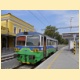 Motorový vůz 810 141-2 "Ježek" před polednem stál ve stanici Velké Losiny, kam přijel jako Os13762. Před polednem se jako Os13765 vrátil v 11.48 do stanice Petrov nad Desnou, aby hned točil na další výkon jako Os23858 do Sobotína s odjezdem v 11.53. Než jsem odjeli ze stanice, po naší levici nás předjela jednotka "Desná" jako Os13764 jedoucí do cílové stanice Kouty nad Desnou. Po výjezdu z Petrova nad Desnou se trať okamžitě stáčí pravým obloukem k hlavní silnici č. 11 na Ostravu. Jízda nebude nijak dlouhá, protože trať do Sobotína měří nějaké 3km a to je před námi ještě Petrov nad Desnou zastávka. Blížíme se k přejezdu se silnicí č. 11, kde je zároveň zmíněná zastávka. Teď v poledne je vytíženost spoje minimální, nikdo nevystupuje, nemáme zpoždění a nezastavujeme. Přejíždíme po ocelovém mostě, kde pod námi je místní komunikace spojující Rapotín s Petrovem nad Desnou a říčka Merta. Trať více stoupá a klikatí se mezi stromy na úpatí svahu. Netrvá dlouho a přijíždíme do stanice Sobotín. Po naší pravici je viditelná zástavba kolem silnice č. 11, ale jedná se o obec Petrov nad Desnou. Obec Sobotín začíná až za stanicí.